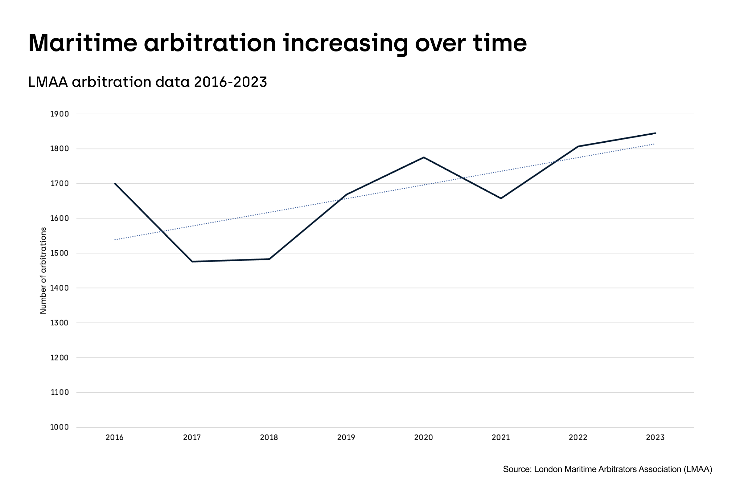 “The decline in High Court disputes is in sharp contrast to an increase in the number of LMAA appointments and references in 2022 and 2023, which were themselves significantly higher than those in 2021.” Analysis of LMAA figures between 2016 and 2023 does show an increase over time, although this trend is not quite as significant. Reasons for a shift from litigation to arbitration include control, flexibility and potentially costs but as Dean noted, “I have been doing this job for 35 years and the popularity of arbitration v High Court goes through phases.”