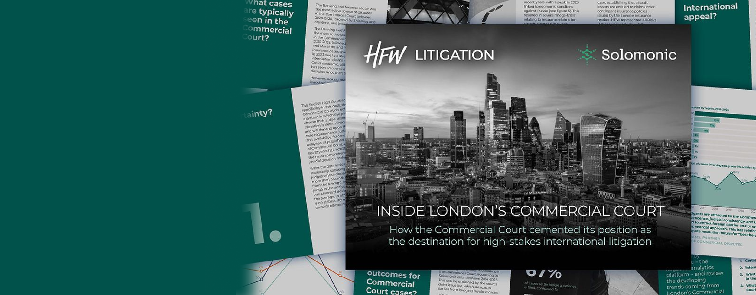 Powered by Solomonic’s litigation data, HFW reviews the trends coming from the Commercial Court which reinforce its position as the destination for high-stakes international disputes.